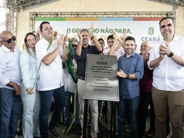 Mais segurança viária e mobilidade urbana. Nesta terça-feira (10), o governador Elmano de Freitas esteve em São Gonçalo do Amarante, na Região Metropolitana de Fortaleza, para entregar a restauração da ponte sobre o Rio São Gonçalo e assinar ordem de serviço para a urbanização das entradas do município. Elmano de Freitas, acompanhado de autoridades, também vistoriou obras de uma nova escola em tempo integral e visitou o Inovatec.